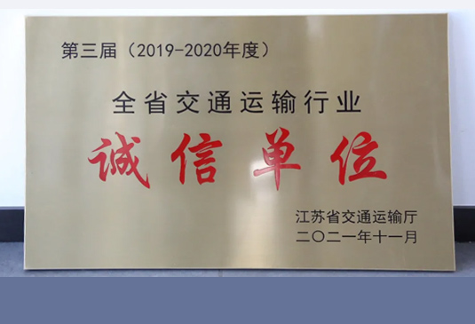 2021年獲第三屆(2019-2020年度)江蘇省交通運(yùn)輸行業(yè)“誠(chéng)信單位”稱號(hào)