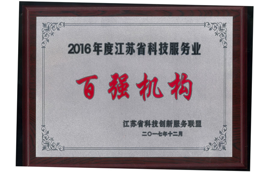 2017年被授予江蘇省科技服務(wù)業(yè)百?gòu)?qiáng)機(jī)構(gòu)稱號(hào)