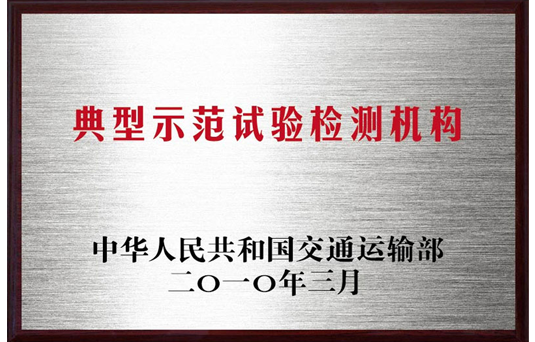 2010年被交通運(yùn)輸部授予“典型示范試驗(yàn)檢測(cè)機(jī)構(gòu)”稱號(hào)(全國(guó)兩家之一)