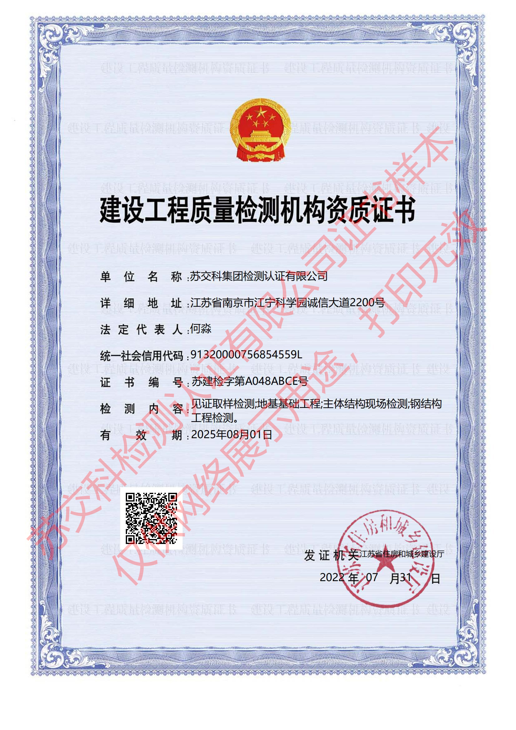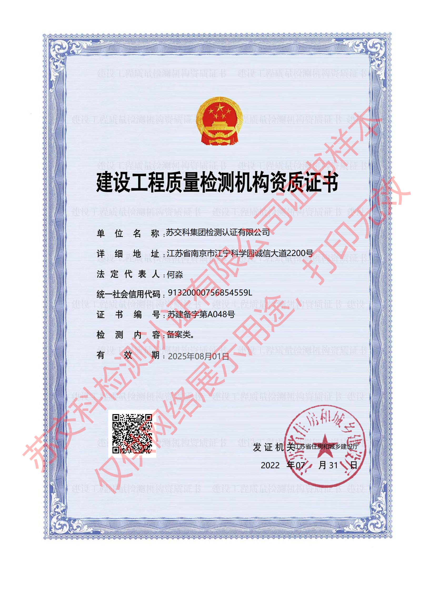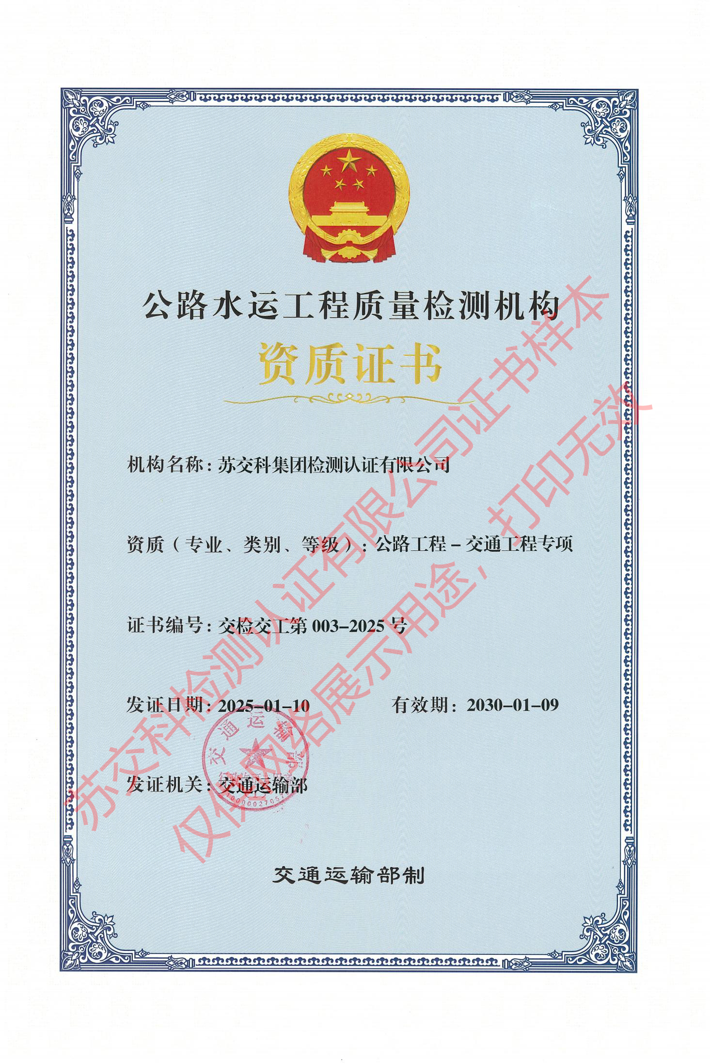 集團(tuán)資質(zhì)蘇交科擁有工程行業(yè)各領(lǐng)域甲級資質(zhì),包括城鄉(xiāng)規(guī)劃甲級資質(zhì);工程咨詢綜合甲級資質(zhì);工程咨詢專業(yè)甲級資質(zhì)(公路、生態(tài)建設(shè)和環(huán)境工程、水文地質(zhì)、工程測量、巖土工程、城市規(guī)劃、鐵路、城市軌道交通、港口河海工程、市政公用工程(市政交通、給排水)、水利工程、旅游工程);工程設(shè)計綜合甲級資質(zhì);工程勘察綜合類甲級資質(zhì);測繪甲級資質(zhì);公路工程和市政公用工程總承包一級資質(zhì);公路工程、水運(yùn)工程、市政公用工程監(jiān)理甲級資質(zhì);公路工程甲級、公路工程交通工程專項、水運(yùn)工程材料甲級和水運(yùn)工程結(jié)構(gòu)甲級試驗檢測資質(zhì)。