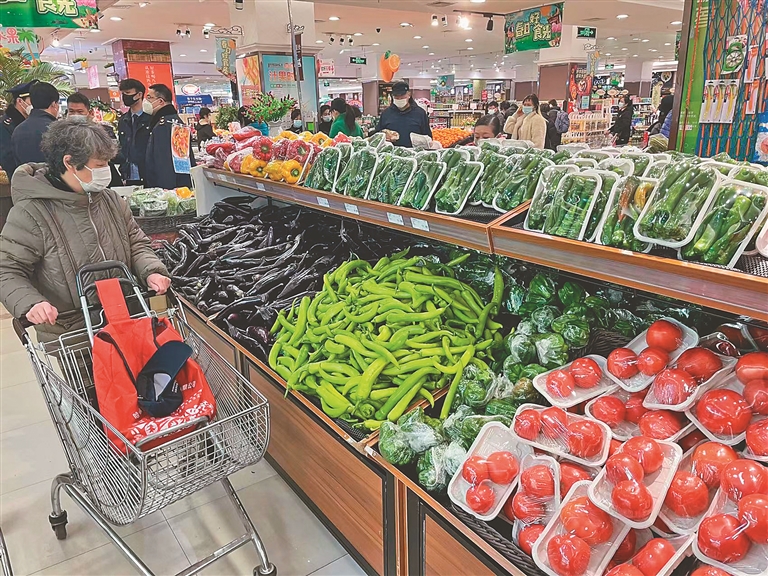 哈爾濱疫情防控期間,物資供應(yīng)和物價(jià)情況備受關(guān)注。記者從相關(guān)方面了解到,目前大批果蔬正在運(yùn)往哈市,完全能夠保證市民生活需求。圖為28日上午哈爾信食品超市(中央商城店)的果蔬柜臺(tái)。黑龍江日?qǐng)?bào)全媒體記者 邢漢夫攝