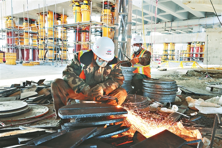 工人正在進行鋼板切割作業(yè)。本報記者 張翎攝
