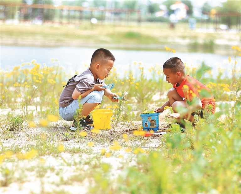 人們有的在觀光棧橋行走,有的在岸邊賞花觀景,有的在忙著野餐。最歡樂的是孩子們,他們玩沙子、玩滑板車……奔跑著,歡笑著,度過快樂的假日。