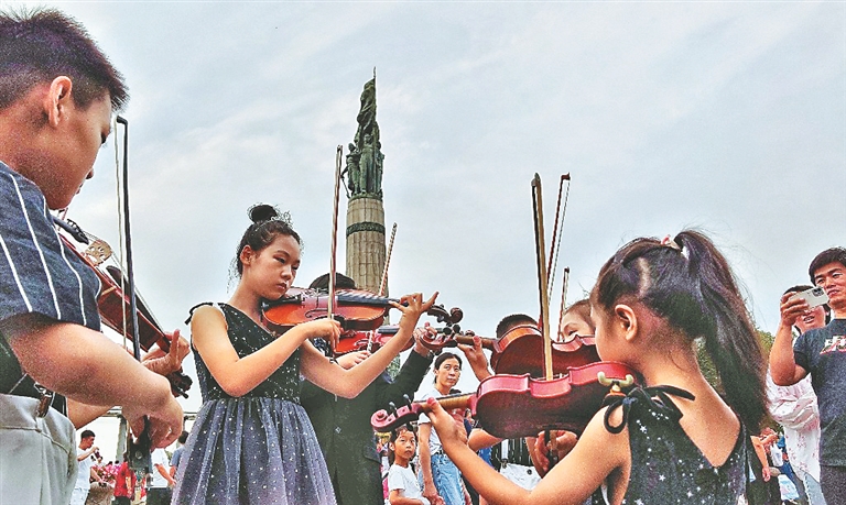 連日來,哈爾濱松花江畔,江風(fēng)習(xí)習(xí)、樂聲陣陣。游客和市民紛紛到江邊游玩納涼,市民音樂嘉年華系列文化活動繼續(xù)在哈爾濱防洪紀(jì)念塔廣場舉行。哈市的小朋友也積極參與進來,吹拉彈唱,為觀眾獻上他們的才藝。