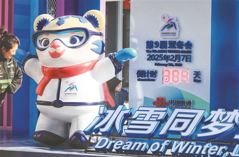 4月9日,哈爾濱市街頭再添新景觀,多組2025年第九屆亞冬會(huì)吉祥物塑像與倒計(jì)時(shí)牌集體亮相。在中央大街、哈爾濱站、巴洛克老街等處,游人與市民爭相與亞冬會(huì)吉祥物“濱濱”“妮妮”合影。