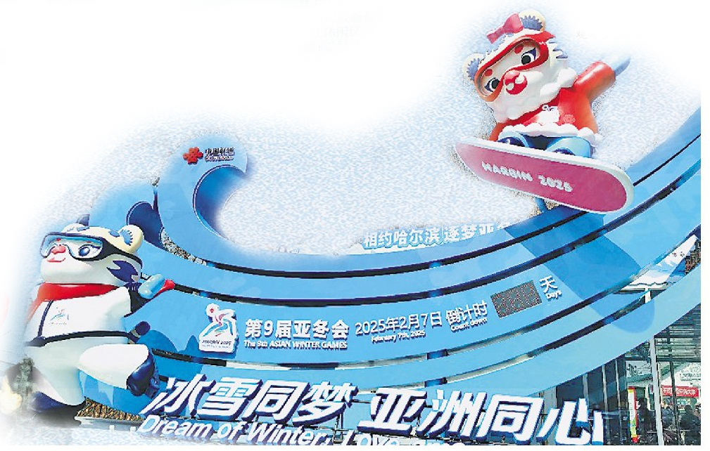 在哈爾濱新區(qū)組織的亞冬會倒計時300天活動中,參與者體驗主題涂鴉。