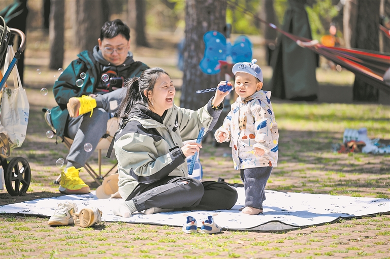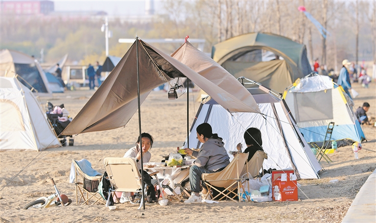 日前,不少市民來到哈爾濱大劇院濕地露營,享受春光。沙灘上、樹蔭下,孩子們盡情嬉戲玩耍,大人們在一旁野餐聊天。