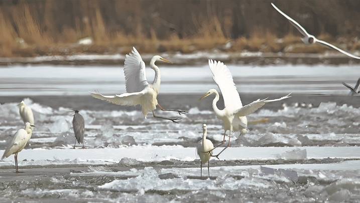?初春松花江 鷺鳥來(lái)“冰釣”