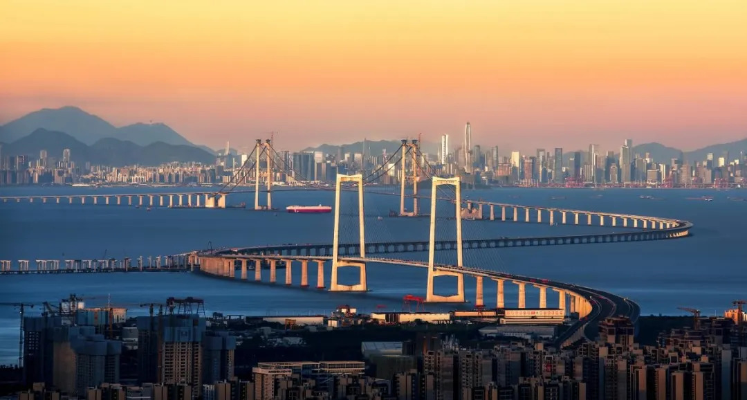 世界級的“橋、島、隧、地下互通”集群工程;橋面距海面達90米,是世界上最高的海中大橋。