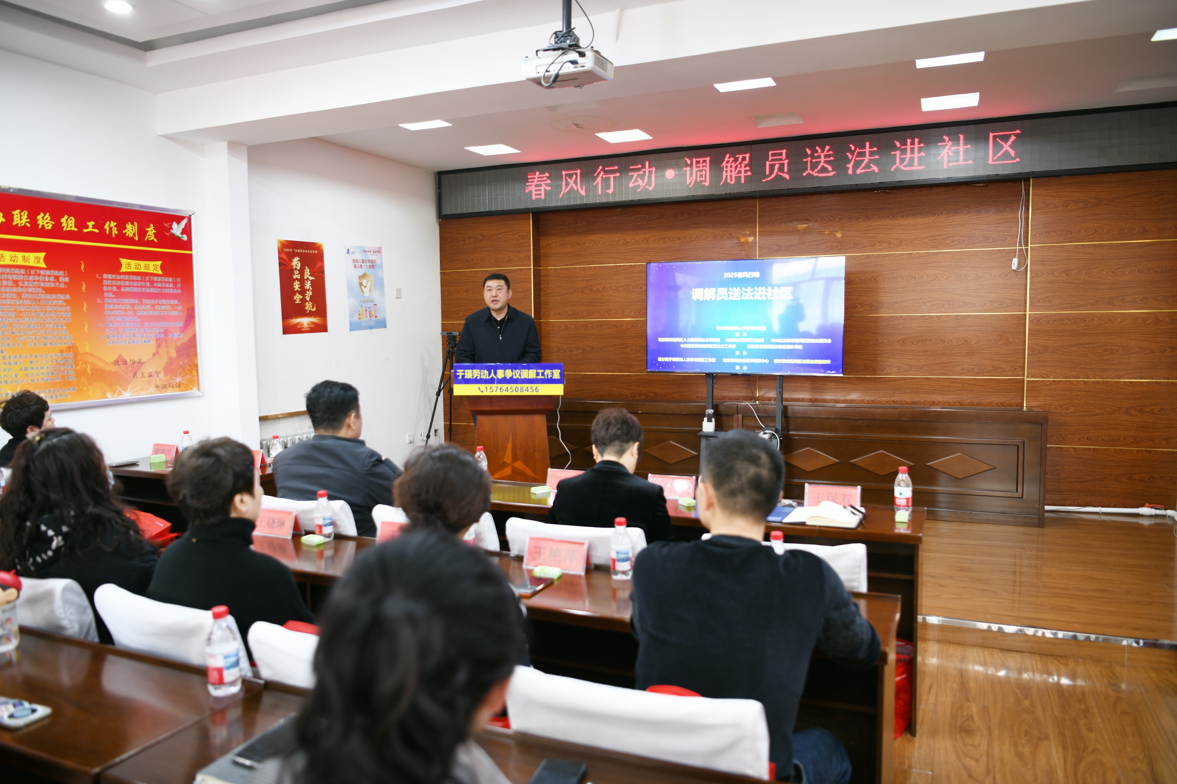 哈爾濱市南崗區(qū)新春街道工委書(shū)記王保雙表示,今年是八五普法的收官之年,八五普法”規(guī)劃的主要目標(biāo)是到今年,全面提升公民法治素養(yǎng),增強(qiáng)全社會(huì)尊法學(xué)法守法用法的意識(shí),為法治社會(huì)建設(shè)奠定堅(jiān)實(shí)基礎(chǔ)。社區(qū)工作在促進(jìn)社會(huì)和諧、提升生活質(zhì)量、推動(dòng)基層治理、促進(jìn)公平、推動(dòng)社會(huì)發(fā)展、應(yīng)對(duì)突發(fā)事件和推動(dòng)可持續(xù)發(fā)展等方面發(fā)揮著關(guān)鍵作用,是現(xiàn)代社會(huì)治理不可或缺的一部分。社區(qū)工作者學(xué)習(xí)法律知識(shí)不僅能提升服務(wù)質(zhì)量、解決糾紛,還能推動(dòng)社區(qū)治理、增強(qiáng)職業(yè)素養(yǎng)、促進(jìn)社會(huì)和諧,并在法治建設(shè)中發(fā)揮重要作用。新年伊始,新春街道與區(qū)人社局、區(qū)司法局、區(qū)委政法委、區(qū)委社工部聯(lián)合主辦這場(chǎng)調(diào)解員送法進(jìn)社區(qū)活動(dòng),正是落實(shí)中央部署的一次生動(dòng)實(shí)踐。