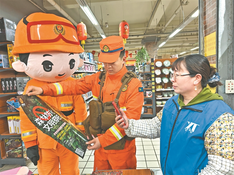 圖為消防員向駐地群眾宣傳防火知識(shí)。本報(bào)記者 楊惠暄攝