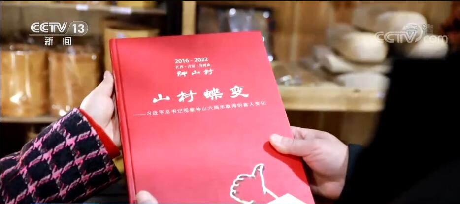 大家看,我手里有一本畫冊(cè),這本畫冊(cè)反映了2016年到2022年神山村的山村“蝶”變。翻開畫冊(cè)我們可以看到神山村發(fā)生了翻天覆地的變化,叢林掩映、白墻黛瓦、美不勝收。從最早的照片到現(xiàn)在,短短5年時(shí)間,就發(fā)生了非常巨大的、幸福的變化。打動(dòng)我們的還有許多點(diǎn),在這個(gè)畫冊(cè)當(dāng)中體現(xiàn)出來的村民的精氣神,他們臉上洋溢著像花兒一樣的滿滿幸福感。所以有人就說,如今的神山村和過去貧困的神山村相比,如今是糍粑越打越黏,日子是越過越甜。