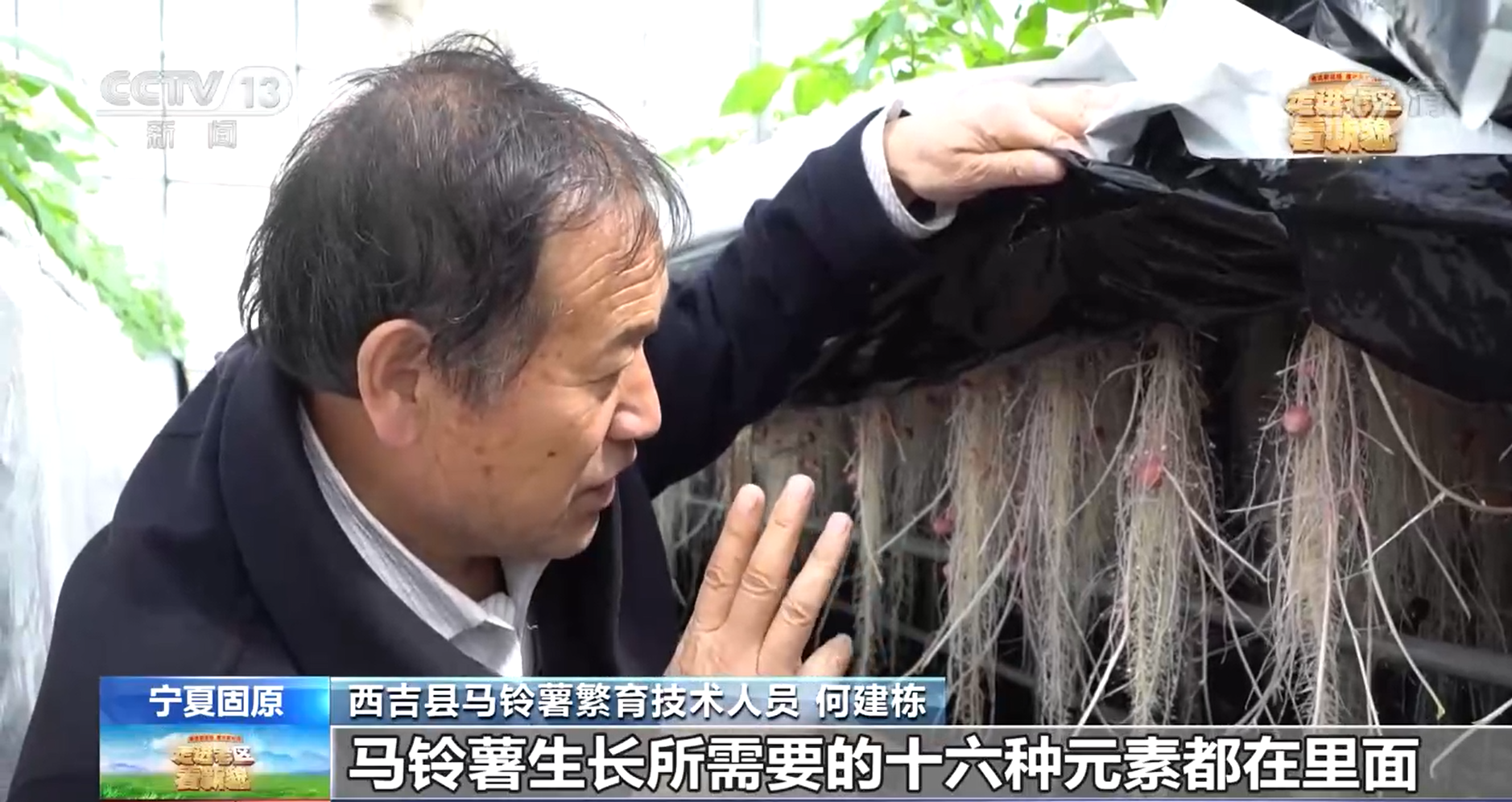 總臺記者:我現(xiàn)在是在寧夏固原的一處馬鈴薯繁育基地。說到馬鈴薯的育種,很多人認為種馬鈴薯靠種子,但其實它是依靠塊莖。以往西海固的老百姓們會把去年的馬鈴薯切成一塊兒一塊兒的種到田里。但是這樣做第一個是產(chǎn)量不高,第二個是極容易遭遇病蟲害。所以如今,在現(xiàn)代化的大棚當中,人們通過水培、物培等等方式來孕育馬鈴薯的種苗,這些種苗也為來年的豐收孕育了新的希望。