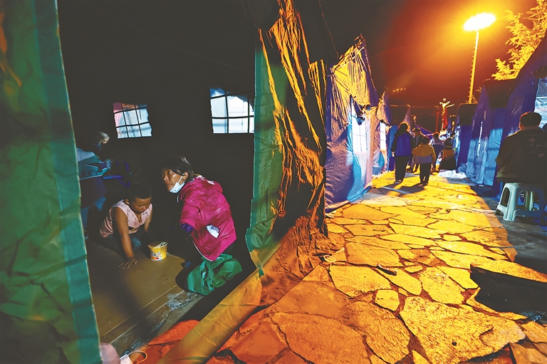 災(zāi)情牽動人心。5日20時左右,記者在磨西鎮(zhèn)中心的貢嘎廣場看到,一頂頂臨時安置帳篷正在搭建,醫(yī)護(hù)人員在臨時醫(yī)療救助點(diǎn)里忙著包扎,電力搶修人員忙著搶修線路,抓緊恢復(fù)供電、通信。