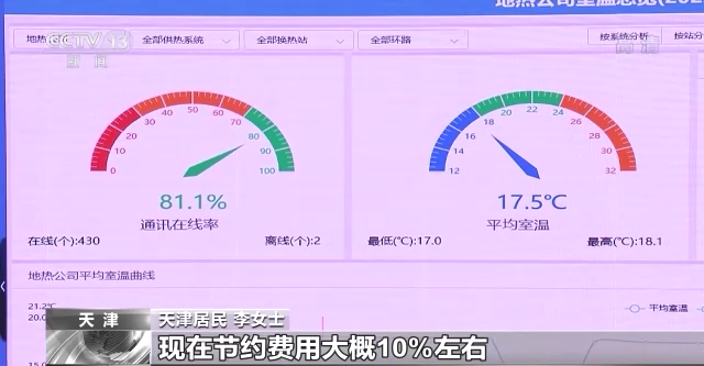 天津居民 李女士:現(xiàn)在地熱供暖效果也比較好,而且也經(jīng)濟環(huán)保。和之前自己用天然氣供暖(相比),現(xiàn)在節(jié)約費用大概10%左右。