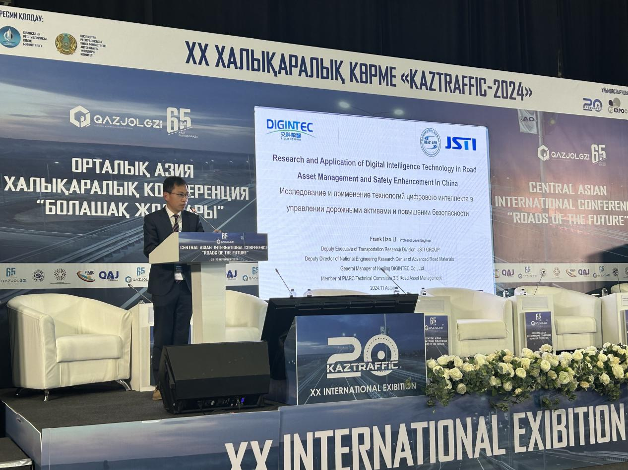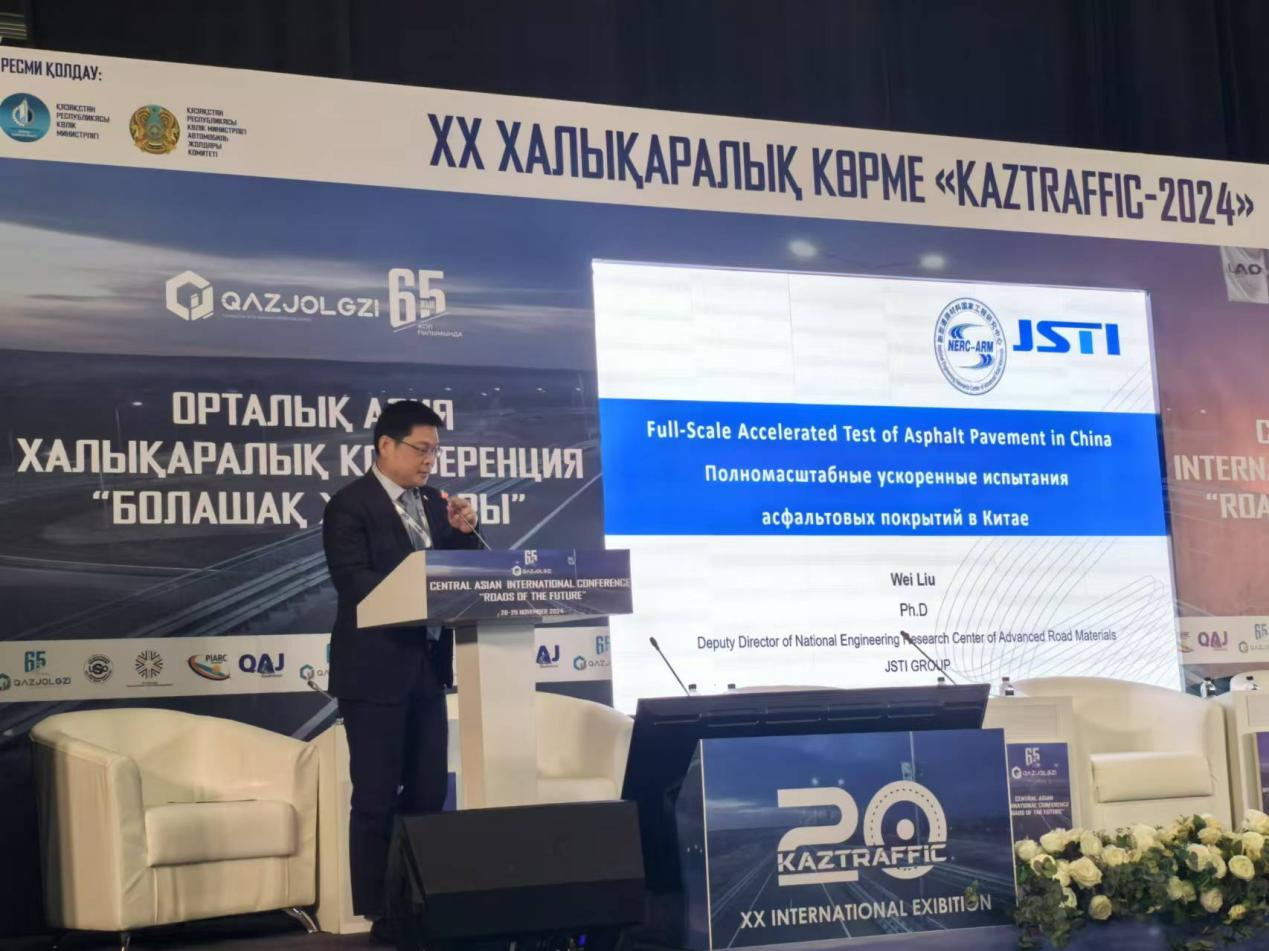 會(huì)上,交通科學(xué)研究院總工程師劉偉發(fā)表了《瀝青路面加速加載實(shí)驗(yàn)》學(xué)術(shù)報(bào)告,交科瑞路總經(jīng)理王文峰代交通科學(xué)研究院副院長(zhǎng)李豪發(fā)表了《數(shù)智化技術(shù)在道路資產(chǎn)與安全提升的應(yīng)用》學(xué)術(shù)報(bào)告。匯報(bào)內(nèi)容吸引了來(lái)自俄羅斯、哈薩克斯坦等多國(guó)道路領(lǐng)域?qū)<翌I(lǐng)導(dǎo)前來(lái)問(wèn)詢。