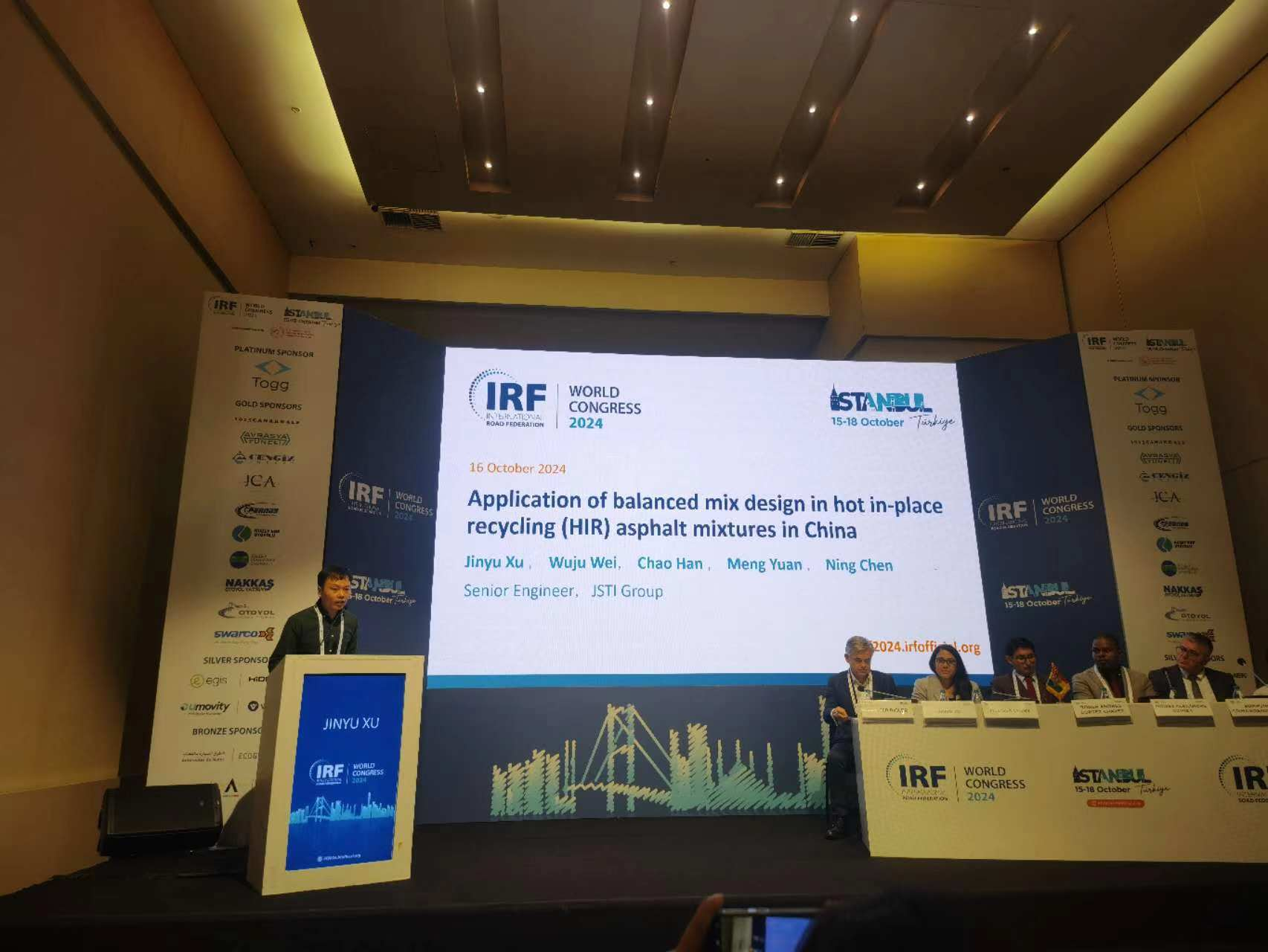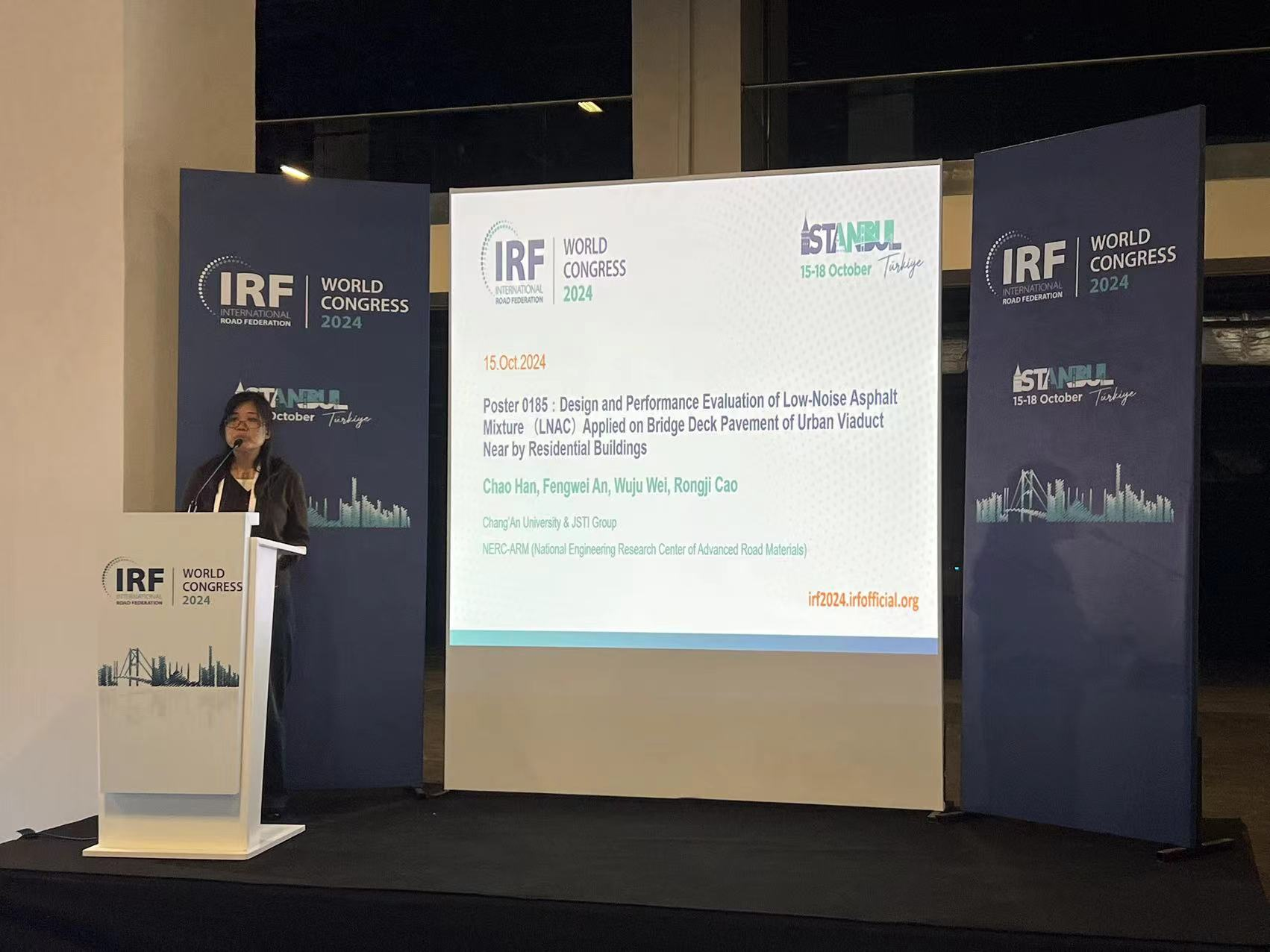 大會(huì)期間,集團(tuán)交通科學(xué)研究院道路所副主任工程師安豐偉發(fā)表了《Design and Performance Evaluation of Low-Noise Asphalt Mixture (LNAC)Applied on Bridge Deck Pavement of Urban Viaduct Near by Residential Buildings》墻報(bào)報(bào)告,交通科學(xué)研究院二級(jí)工程師徐金玉在TS44 - Innovative Materials Recycling Techniques論壇上發(fā)表了《Application of balanced mix design in hot in-place recycling (HIR) asphalt mixture in China》主題報(bào)告。
