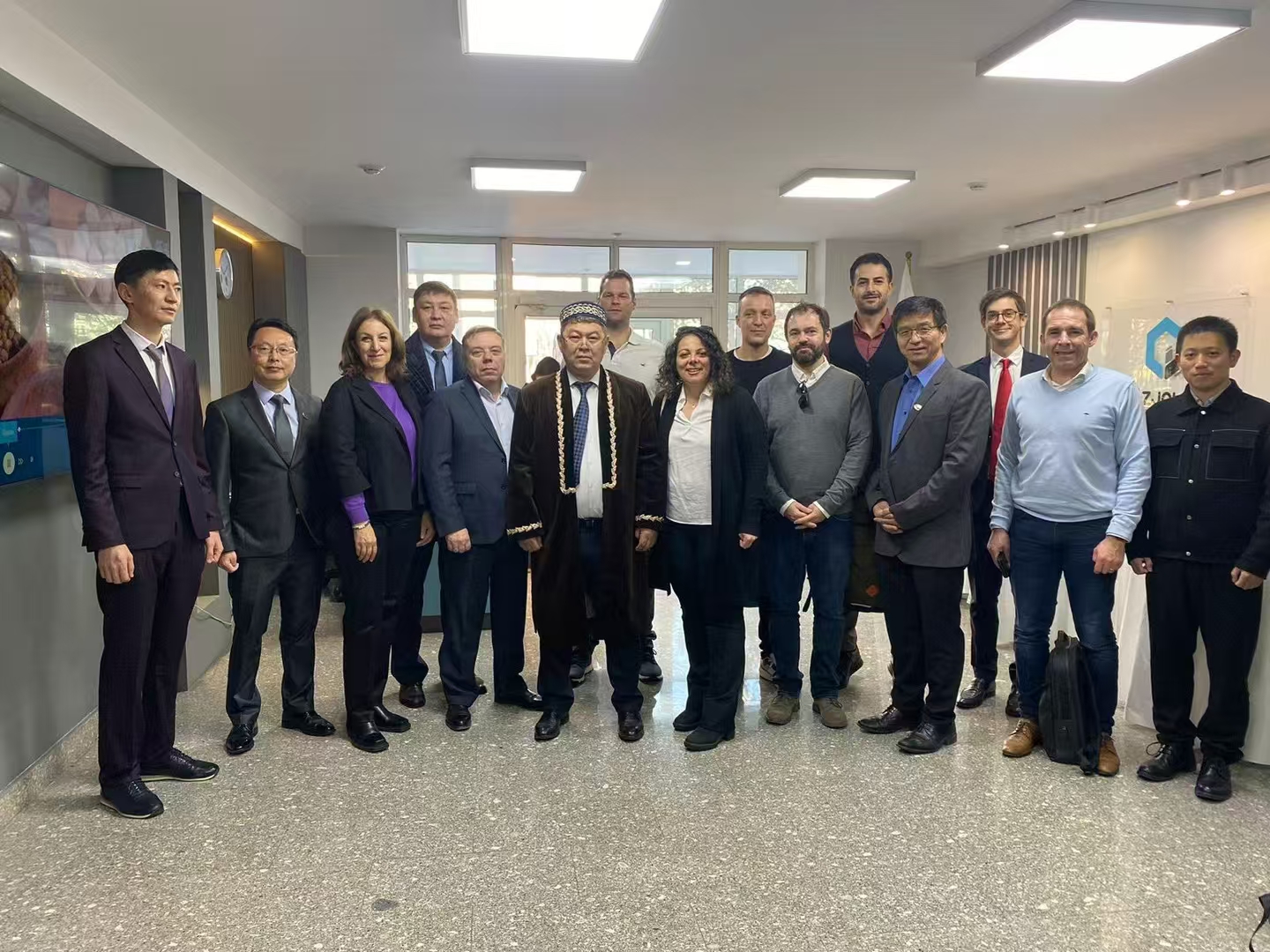 出訪期間,楊揚(yáng)院長(zhǎng)代表集團(tuán)贈(zèng)予哈公路院總裁Alibayeva Arman禮物和賀信,慶祝哈薩克斯坦公路研究院成立65周年,并對(duì)其邀請(qǐng)?zhí)K交科參加2024中亞交通國(guó)際會(huì)議表示感謝;拜訪了中信建設(shè)哈分公司總經(jīng)理魏慶剛,雙方就工程領(lǐng)域中國(guó)企業(yè)在哈發(fā)展的現(xiàn)狀以及遇到的問(wèn)題開(kāi)展座談交流;拜訪了哈薩克斯坦國(guó)家公路公司總裁Imanashev Darkhan、總工程師Imashev Serik,雙方就智能施工監(jiān)控系統(tǒng)相關(guān)技術(shù)與未來(lái)合作進(jìn)行交流探討;歐亞民族大學(xué)副校長(zhǎng)兼建筑系主任Sabitov Yerlan、實(shí)驗(yàn)室科研產(chǎn)業(yè)中心主任Konkanov Marat邀請(qǐng)團(tuán)隊(duì)參觀了歐亞民族大學(xué)實(shí)驗(yàn)室,并表示希望雙方未來(lái)能夠簽訂新材料檢測(cè)合作協(xié)議,積極開(kāi)展學(xué)術(shù)交流與項(xiàng)目合作。