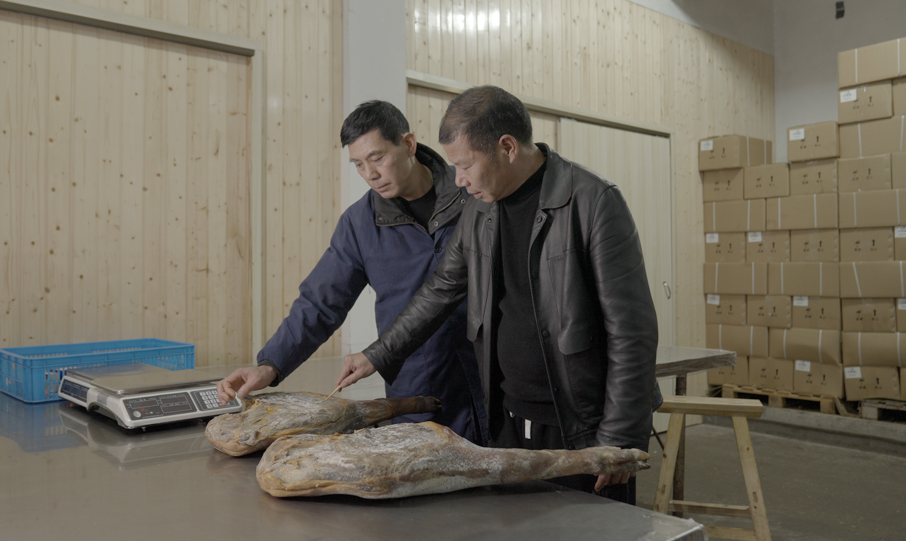 滕維洪(右)自19歲起學習火腿制作,從事相關行業(yè)三十余年。
