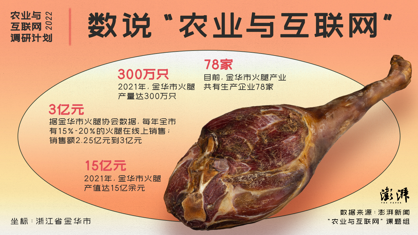 今年11月中旬,澎湃新聞農(nóng)業(yè)與互聯(lián)網(wǎng)課題組前往浙江省金華市調(diào)研,作為一個歷經(jīng)多年的傳統(tǒng)消費品行業(yè),金華火腿產(chǎn)業(yè)的發(fā)展勢頭如何?又面臨哪些發(fā)展問題?在電商時代,火腿產(chǎn)業(yè)如何滿足和適應年輕人的消費需求?產(chǎn)業(yè)未來轉(zhuǎn)型升級之路在哪里?