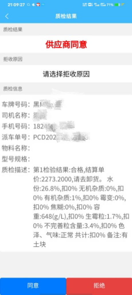 雖然不用去賣糧現(xiàn)場,但整個過程盡在掌握。吳金龍可以通過手機上的APP實時跟進送糧車輛的信息,查看質檢、稱重情況。他還邊打開手機邊向記者展示說:“最后得我在手機上點同意,才能開始卸糧?!?br/>