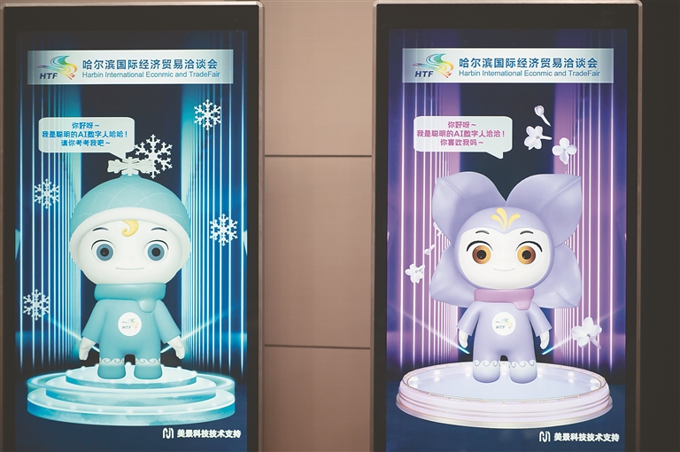 在6月2日召開的第三十二屆哈洽會新聞發(fā)布會上,吉祥物 “哈哈”“洽洽”亮相。與以往IP形象不同的是,它們是可以與大家互動的智能數(shù)字IP形象?,F(xiàn)場記者紛紛提問,“哈哈”“洽洽”毫不怯場,記者們話音剛落,他們馬上眨著眼睛對答如流。