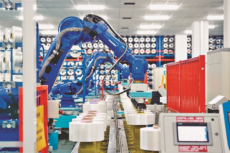 在恒力(蘇州)產(chǎn)業(yè)園的工業(yè)絲生產(chǎn)車間,充滿了科技和智能元素,通過引進(jìn)世界先進(jìn)生產(chǎn)設(shè)備,基本實(shí)現(xiàn)了無人化和“黑燈化”生產(chǎn)?!耙粋€(gè)企業(yè)能否成功,關(guān)鍵在創(chuàng)新、在人才”,正是在這種“創(chuàng)新情懷”的輻射下,近年來,恒力集團(tuán)開啟了轉(zhuǎn)型升級的新征程,旗下紡織化纖企業(yè)邁入新時(shí)代,建設(shè)了多個(gè)智能化工廠、智能化車間,實(shí)現(xiàn)了全流程自動(dòng)化生產(chǎn),并獲得省市兩級“智能工廠”等多項(xiàng)榮譽(yù)稱號。