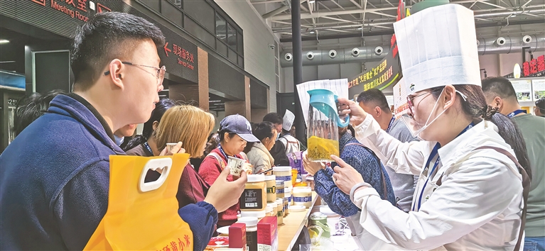 人們爭(zhēng)相品嘗“黑土優(yōu)品”。本報(bào)記者 周靜攝