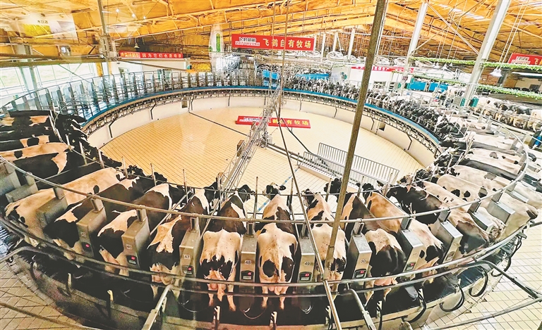 飛鶴自有牧場現(xiàn)代化擠奶大廳。
