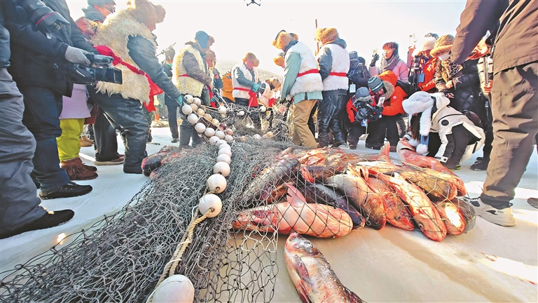 鏡泊湖第十屆冬捕節(jié)現(xiàn)場。本報記者 劉曉云攝