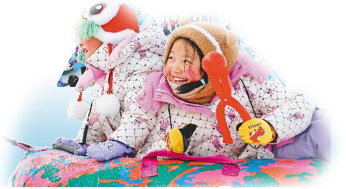 兒童在松花江上的冰雪樂園嬉戲。本報記者 張澍攝