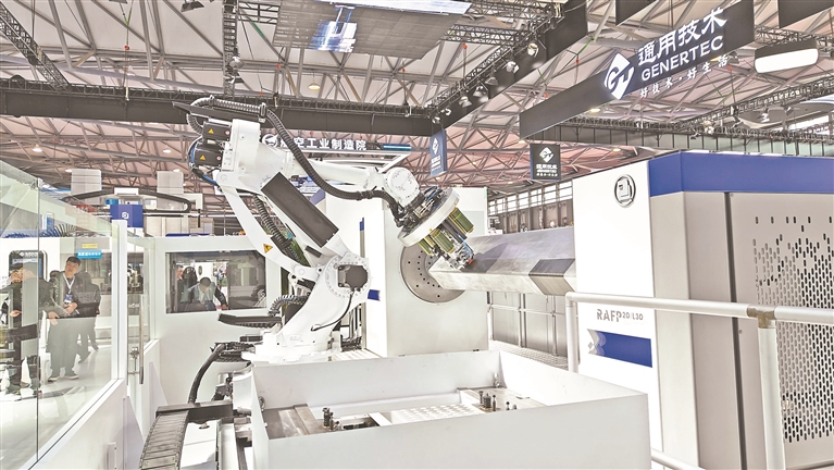 通用技術(shù)齊二機床機器人式鋪絲機。