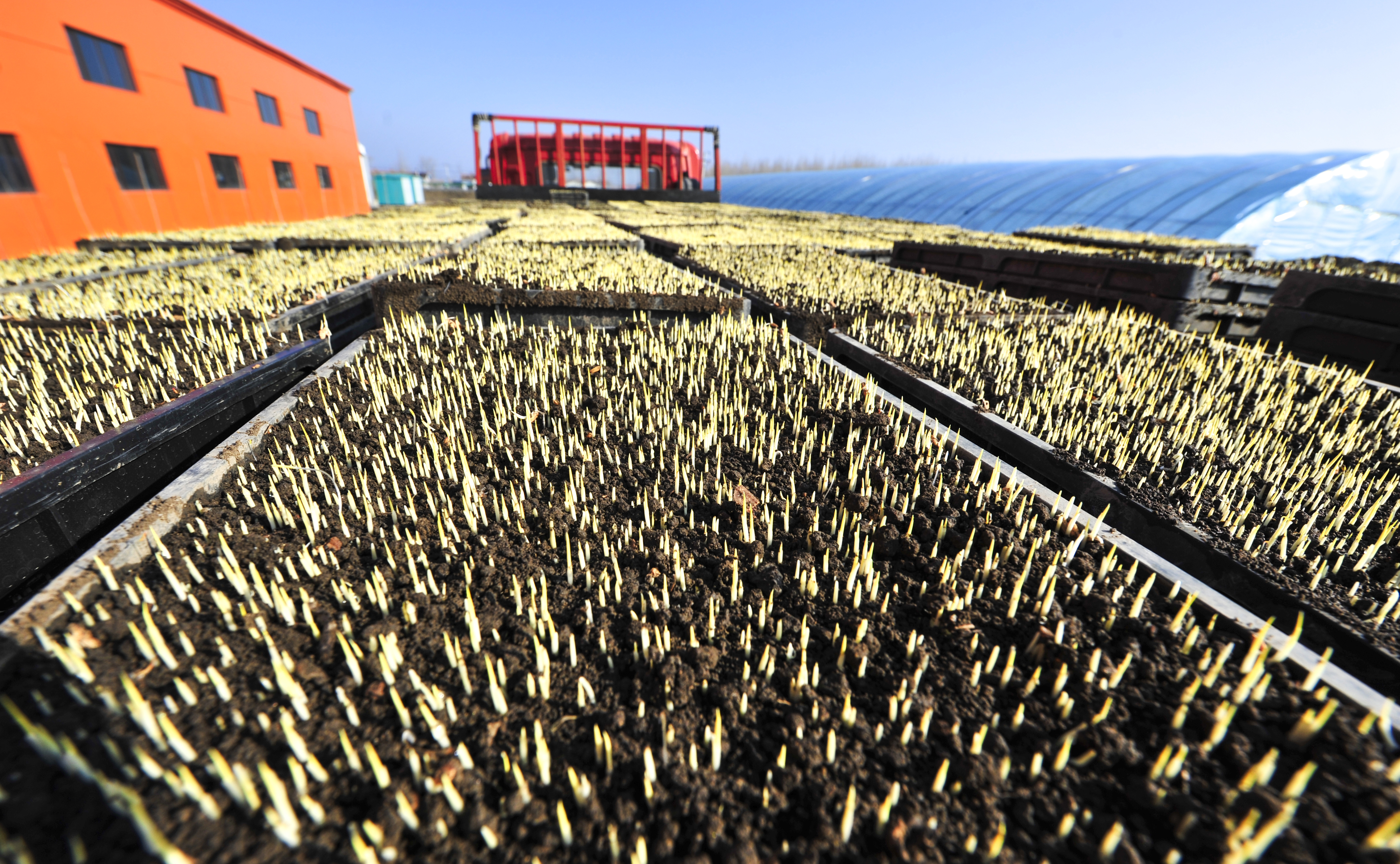 4月8日,在北大荒農(nóng)業(yè)股份友誼分公司第三管理區(qū)水稻育苗園區(qū),工作人員正將首批暗室疊盤后已達(dá)立針狀態(tài)的稻苗,整齊地擺放到超級育秧棚內(nèi),繼續(xù)進(jìn)行育苗。據(jù)介紹,這批稻苗生長期相比正常稻苗快了7-10天,提高了農(nóng)業(yè)生產(chǎn)效率,為糧食豐收奠定了堅實基礎(chǔ)。