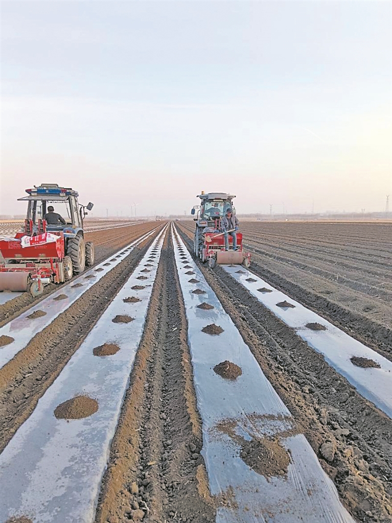 本報訊(張靜怡 記者董新英)日前,蘭西縣榆林鎮(zhèn)慶海瓜菜種植專業(yè)合作社千余畝馬鈴薯開始播種,廣袤的農(nóng)田里一派繁忙景象,大家分工協(xié)作有序種植。這種人工種植采用傳統(tǒng)覆土技術(shù),在覆膜后將切塊種苗按固定行距埋入疏松土壤中,并細致覆蓋土層,確保種苗保溫保濕,促進發(fā)芽整齊。