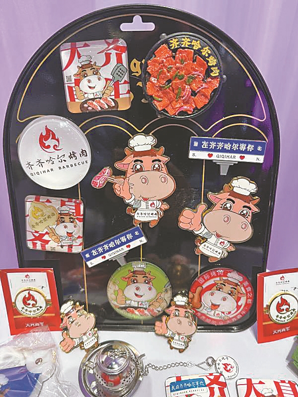5月17日開幕的第三十四屆哈爾濱國際經(jīng)濟(jì)貿(mào)易洽談會(huì)上,由齊齊哈爾市委宣傳部遴選推薦,齊齊哈爾創(chuàng)意設(shè)計(jì)港產(chǎn)業(yè)園區(qū)創(chuàng)新研發(fā)的一次性烤肉套裝和黑龍江琪鶴源文化創(chuàng)意有限公司設(shè)計(jì)生產(chǎn)的“大齊真?!盜P 系列文創(chuàng)產(chǎn)品驚艷亮相,受到廣泛關(guān)注,成為人氣展品。