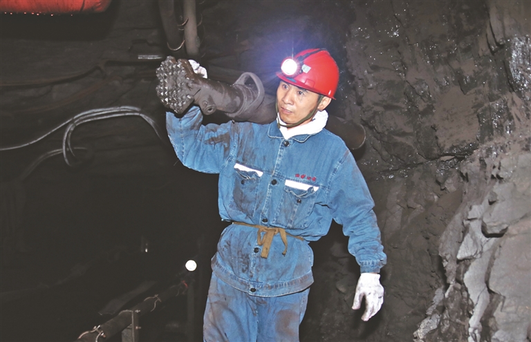 每天7時(shí)許,楊會(huì)軍都會(huì)走進(jìn)立井井塔,乘電梯一般的立井“罐籠”,縱深地下400米,再換乘井下“地鐵”——平巷人車(chē)、斜井人車(chē),來(lái)到位于地層深處57號(hào)煤層的龍煤集團(tuán)七臺(tái)河礦業(yè)公司龍湖煤礦一采區(qū)701采煤隊(duì)采煤工作面作業(yè)。他是采煤班長(zhǎng),也是省第十三次黨代會(huì)代表。