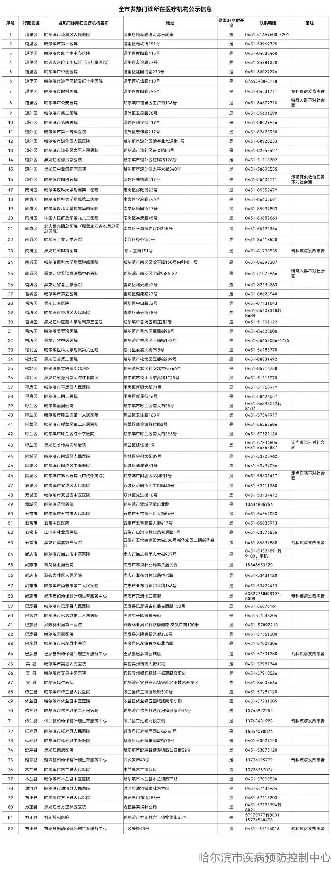 12月10日,哈爾濱市疾控中心公示全市發(fā)熱門診所在醫(yī)療機構。