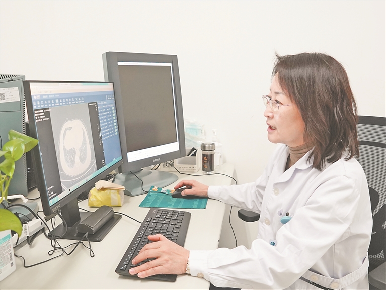 “CT室同樣借助AI技術(shù)解決了海量影像診斷難題。以往閱片醫(yī)生每年需查看幾十萬甚至上百萬張影像圖片,任務(wù)繁重且容易漏診。如今,患者完成CT掃描后,影像數(shù)據(jù)直接錄入AI系統(tǒng)進(jìn)行篩查,大大減輕了醫(yī)生負(fù)擔(dān),提高了診斷準(zhǔn)確性。”CT室主任姜慧杰說。