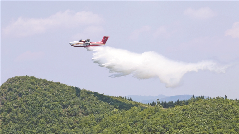 AG600飛機在四川西昌開展典型滅火場景驗證試飛科目(2023年6月攝)。新華社發(fā)