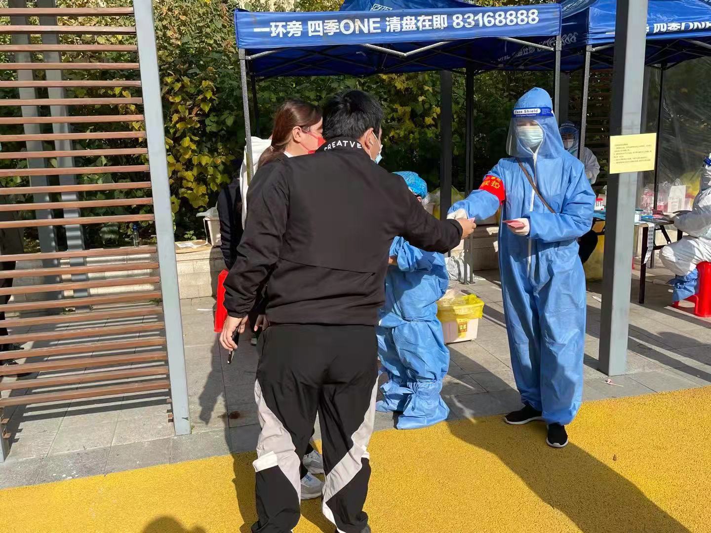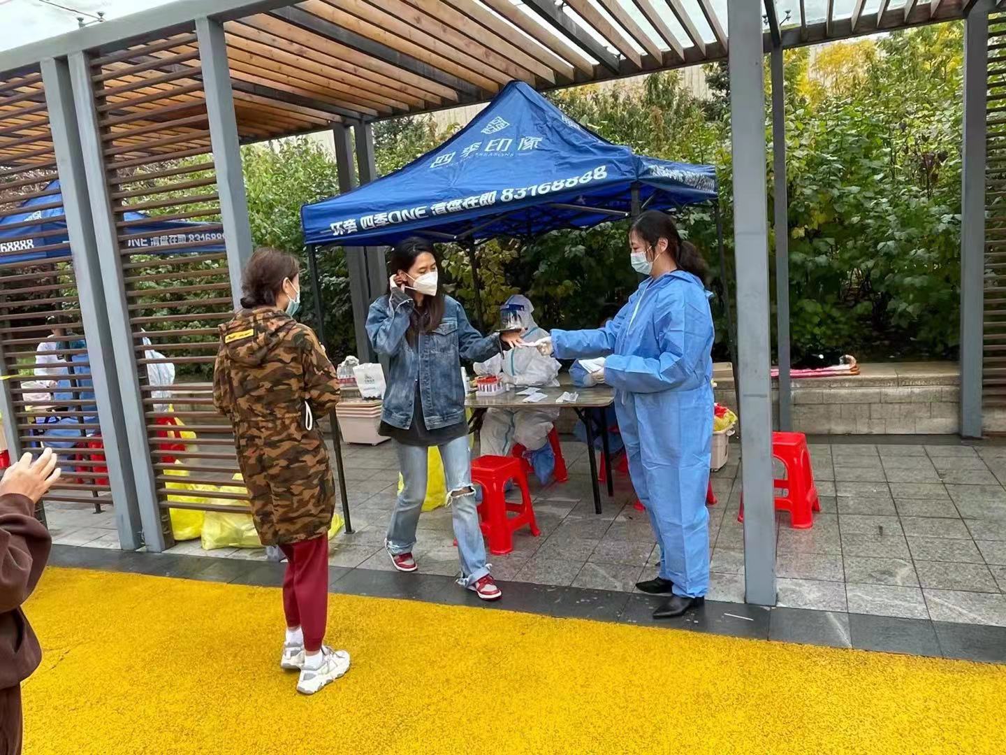 張霞下沉群力翠湖社區(qū),配合工作人員進行了三次核酸檢測,為部分居民進行心理疏導(dǎo)。
