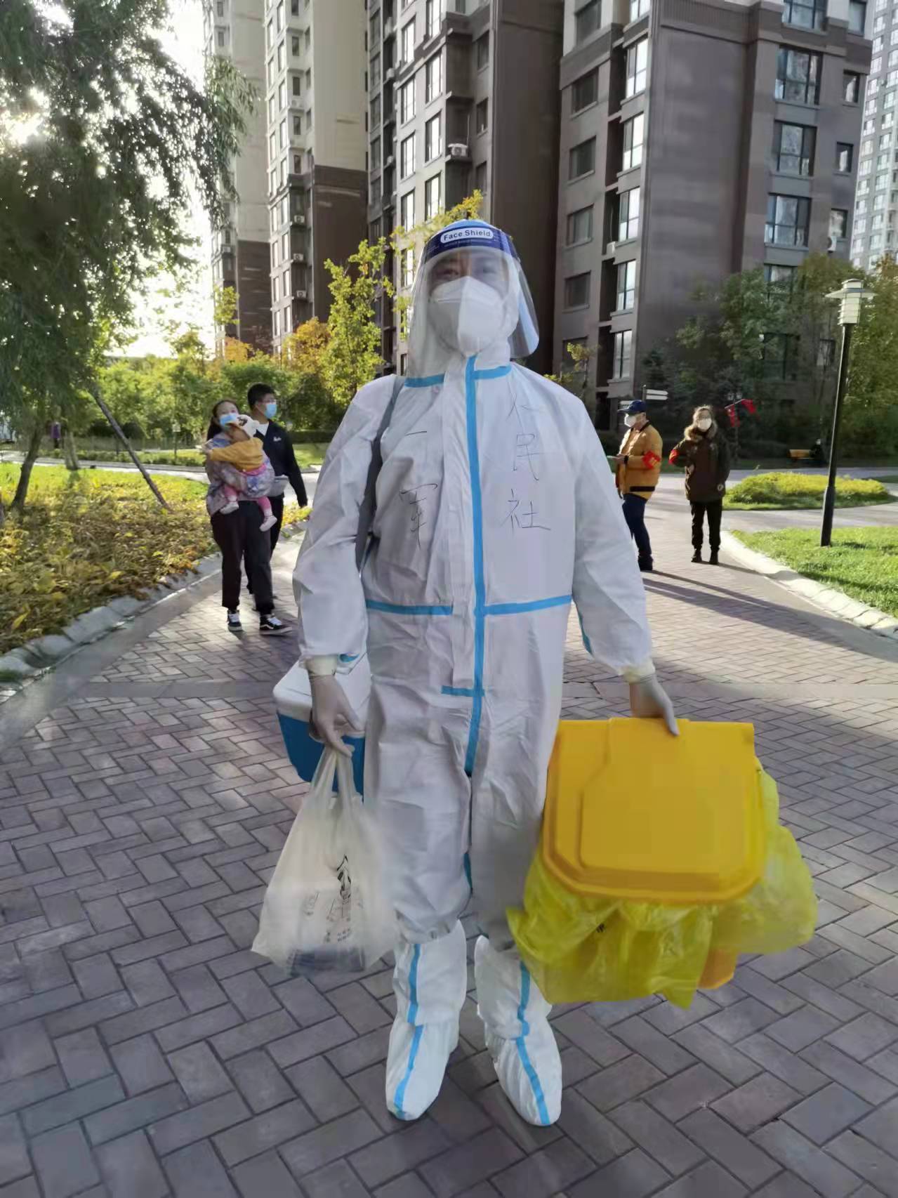 42歲的王軍陽光、帥氣,今年已經(jīng)是他第二次主動請纓志愿參與社區(qū)疫情防控工作。2020年初,他第一個志愿報名參加居住地松北區(qū)的抗疫工作。說是志愿服務(wù),王軍拿出了一絲不茍的態(tài)度,負責(zé)接聽熱線,他就從早到晚,端坐電話機前,解答居民疑問。迷惑的、焦急的、痛苦的……無論打進電話的人什么心態(tài),他都耐心服務(wù),直到對方滿意。嗓子啞了,喝口水;胳膊酸了,換只手。就這樣,下沉的23天里,王軍處理居民糾紛萬余件,得到街道領(lǐng)導(dǎo)和社區(qū)同仁、轄區(qū)居民的充分認可。今年9月25日,王軍再次主動請纓,下沉松北區(qū)松祥街道萬達城社區(qū),連續(xù)奮戰(zhàn)在社區(qū)一線,有什么工作就做什么工作:制作和發(fā)放居民出入證;排查去過疫情風(fēng)險地區(qū)居民;電話核查大數(shù)據(jù)推送的問題人員名單;配合社區(qū)核酸檢測……臨近的秀園封閉了,他所在的華園處于封控狀態(tài),疫情嚴(yán)峻,工作量大,但他的熱情、盡責(zé)感染了居民,他禮貌的話語、周到的服務(wù)得到了居民的暖心回應(yīng),有人惦記他沒吃上晚飯,硬要塞給他一兜兒食品;國慶節(jié)當(dāng)天,一位居民為志愿者們送來一個又大又甜的西瓜。