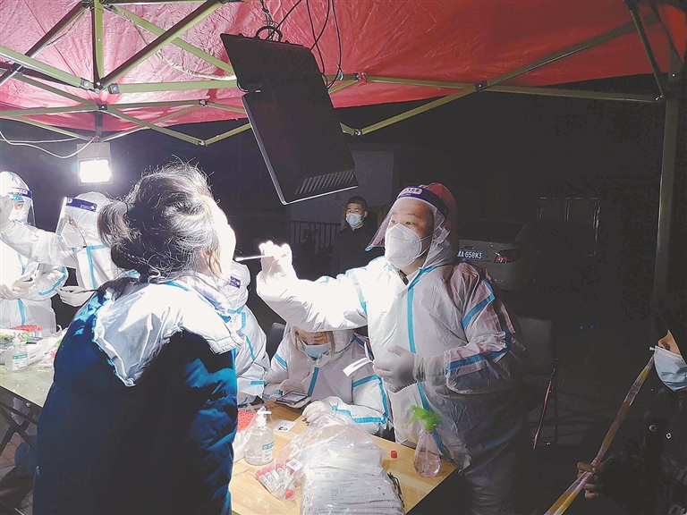 在看到社區(qū)核酸檢測點(diǎn)醫(yī)護(hù)人手不足,居民在雨雪中默默排隊時,金源社區(qū)的居民常曉玲站了出來,“我是醫(yī)務(wù)工作者,給我一套隔離服,我就能上崗!”