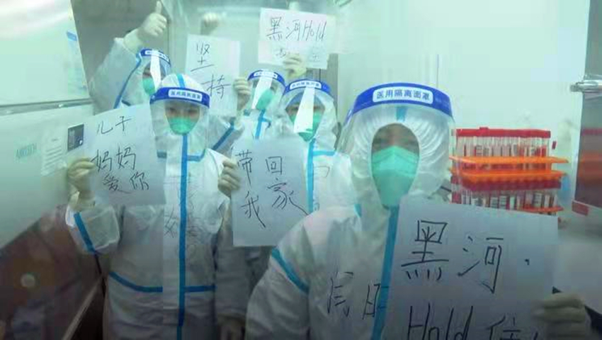 一個多月的時間,從秋意盎然的巴彥到銀裝素裹的黑河,縱使季節(jié)、地點變換,不變的是葛文玉內(nèi)心的堅守:“疫情不滅,我們不退!”在黑河支援的每一天,葛文玉都被一個又一個平凡人感動著,她說,“面對疫情,大家挺身而出,同心協(xié)力地為這個城市堅守。只要我們每個人多一點努力,多一點堅持,多一點理解,黑河清零的那一天指日可待,那時我將帶著我的隊員們平安回家!黑河加油!”