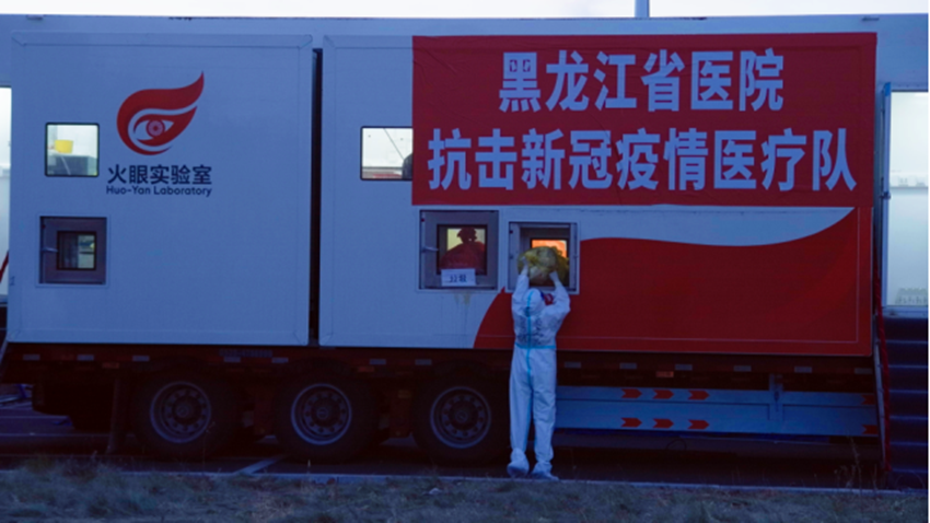 10月27日凌晨,黑龍江省醫(yī)院“火眼號”車載實驗室抵達黑河愛輝區(qū)銀建駐地,全力支援黑河市疫情防控工作。經(jīng)過連夜的安裝調(diào)試,28日正式進入“戰(zhàn)斗”狀態(tài),如今核酸檢測工作正在如火如荼進行中。