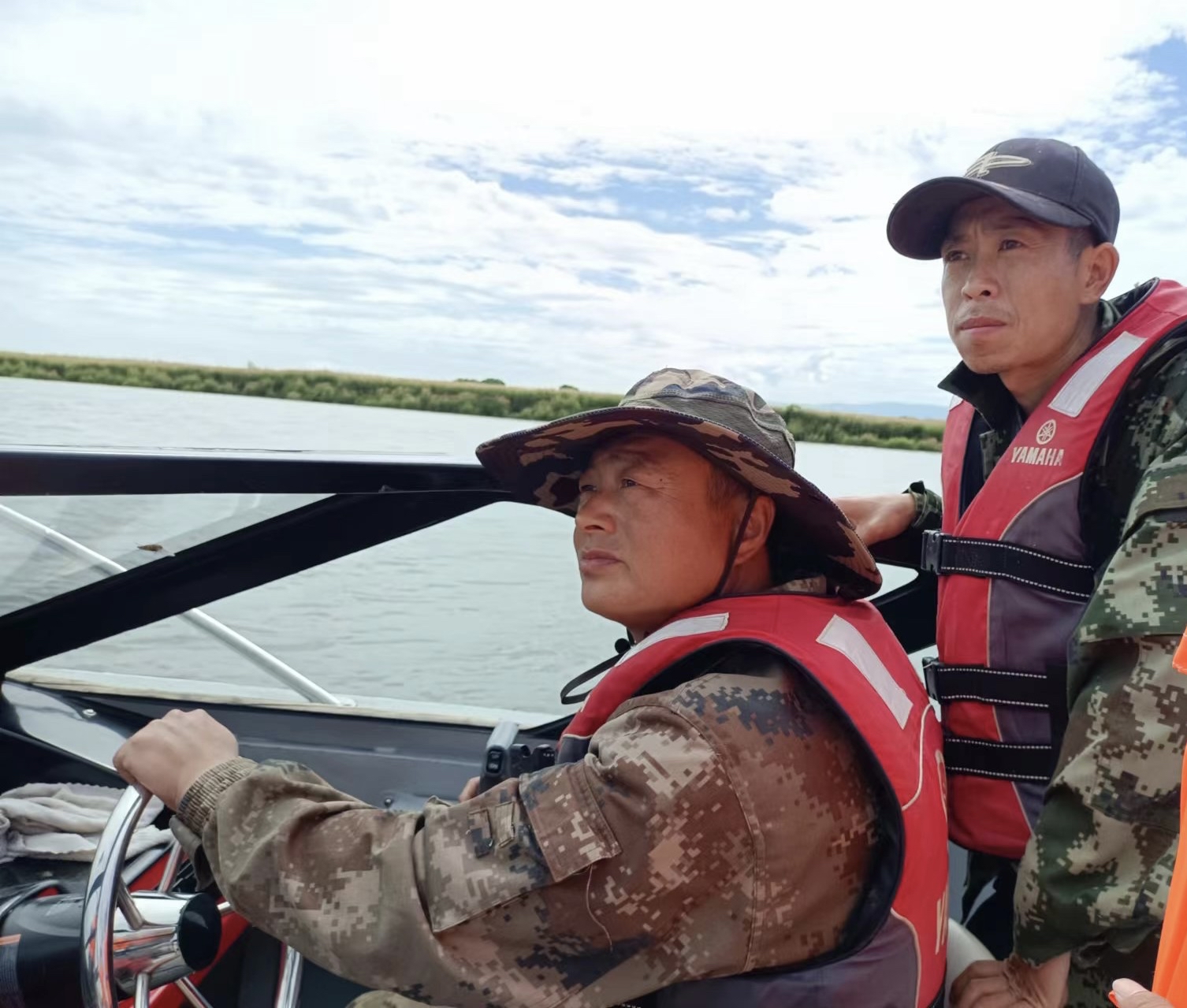 管護(hù)員們的苦樂與酸甜,在記者隨同巡護(hù)中得到了深度體驗(yàn)。烈日炙烤,蚊蟲叮咬,強(qiáng)烈的紫外線似乎要穿透皮膚。游弋于水道之上,穿梭于島嶼之間,船頭有鳥帶路,船尾有魚“斷后”。巡邏快艇劈波斬浪,勇往直前。