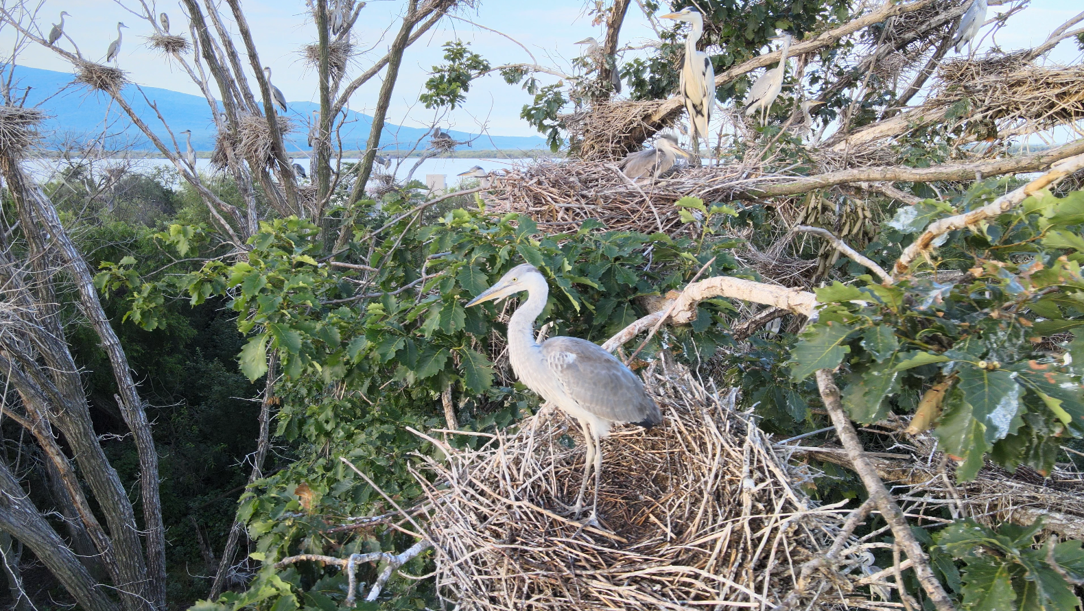 在青龍水道與撫遠(yuǎn)水道交匯的一個(gè)無名小島,常年棲息著數(shù)以萬計(jì)的蒼鷺,拍鳥達(dá)人阿修為其命名“鳥島”。記者一行靠近鳥島,遠(yuǎn)遠(yuǎn)看見蒼鷺在樹梢上盤旋、起落。近距離觀察,發(fā)現(xiàn)在一棵大樹上竟然有43個(gè)大鳥巢,枝頭站滿了蒼鷺。