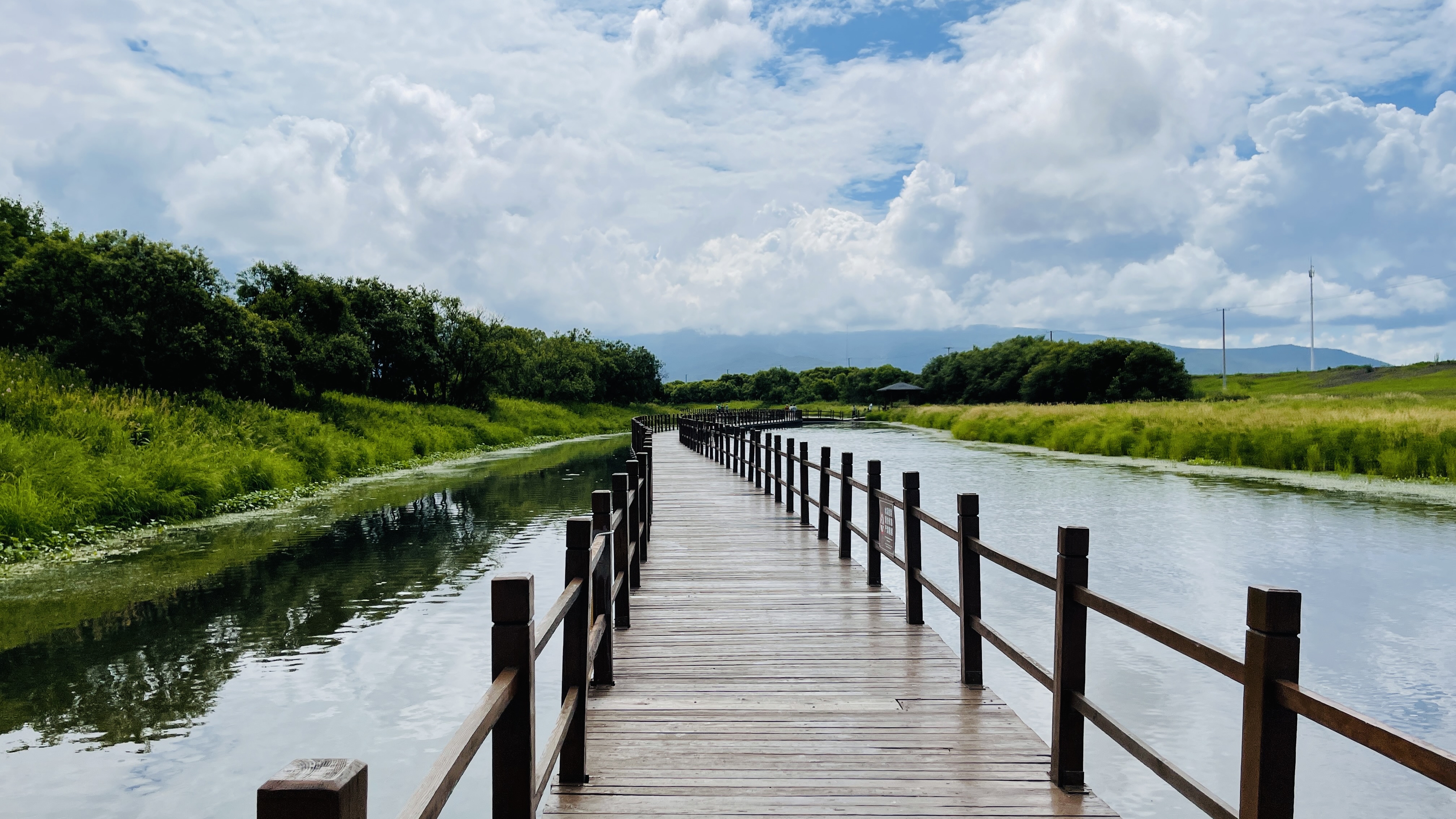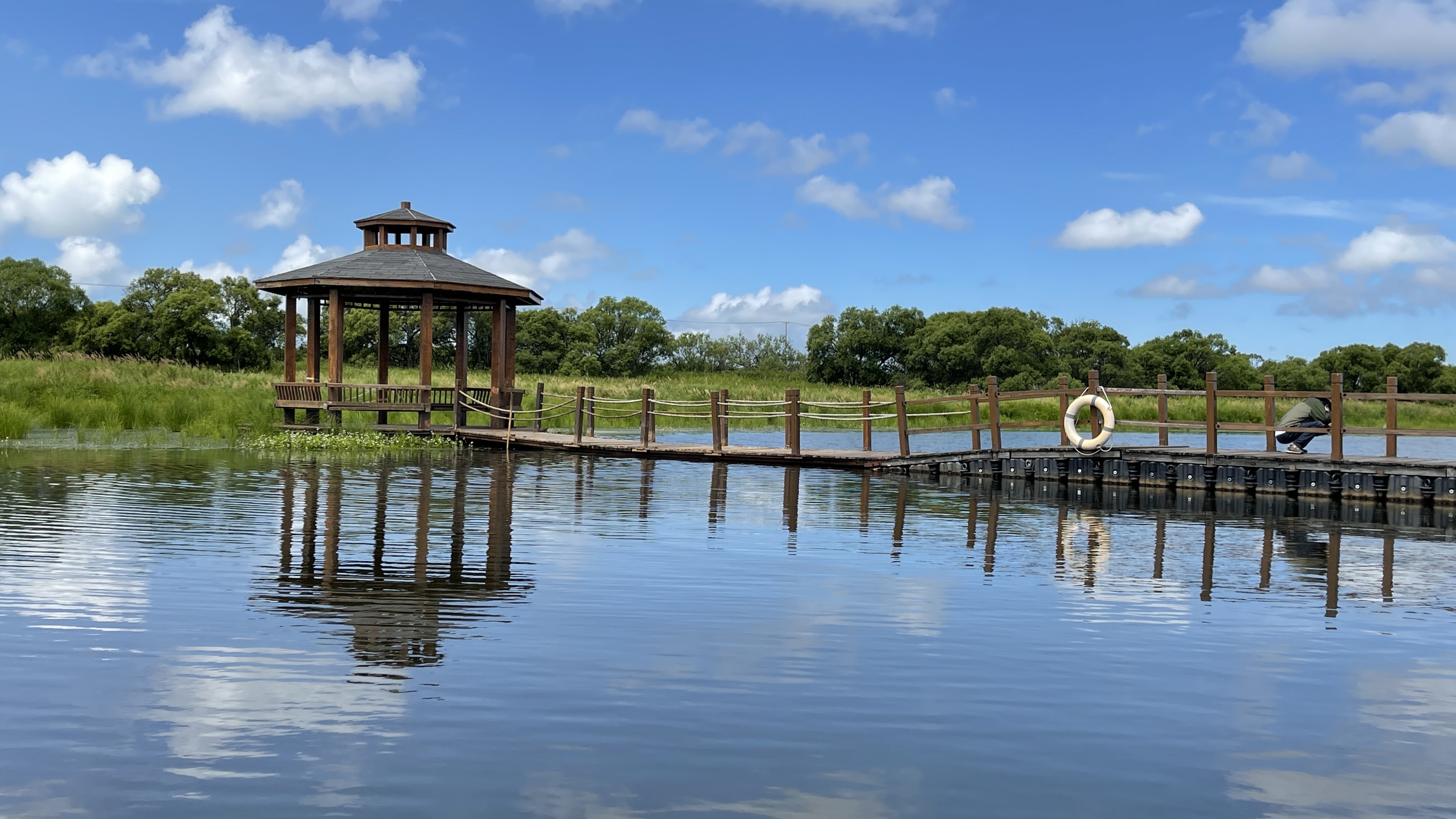 黑瞎子島國(guó)家濕地公園,游客可沿著棧道深入濕地的腹地