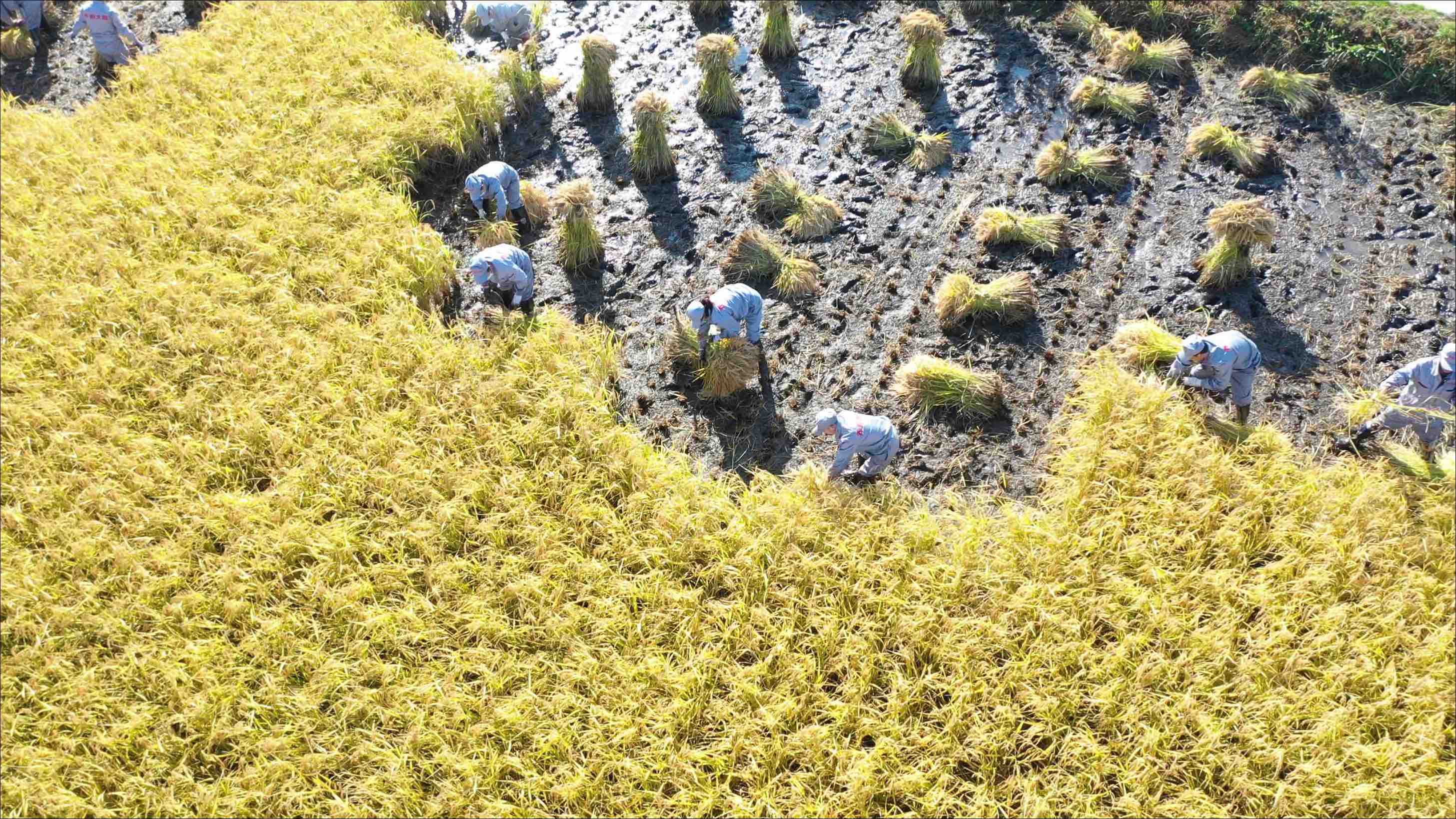 秋收中的稻田