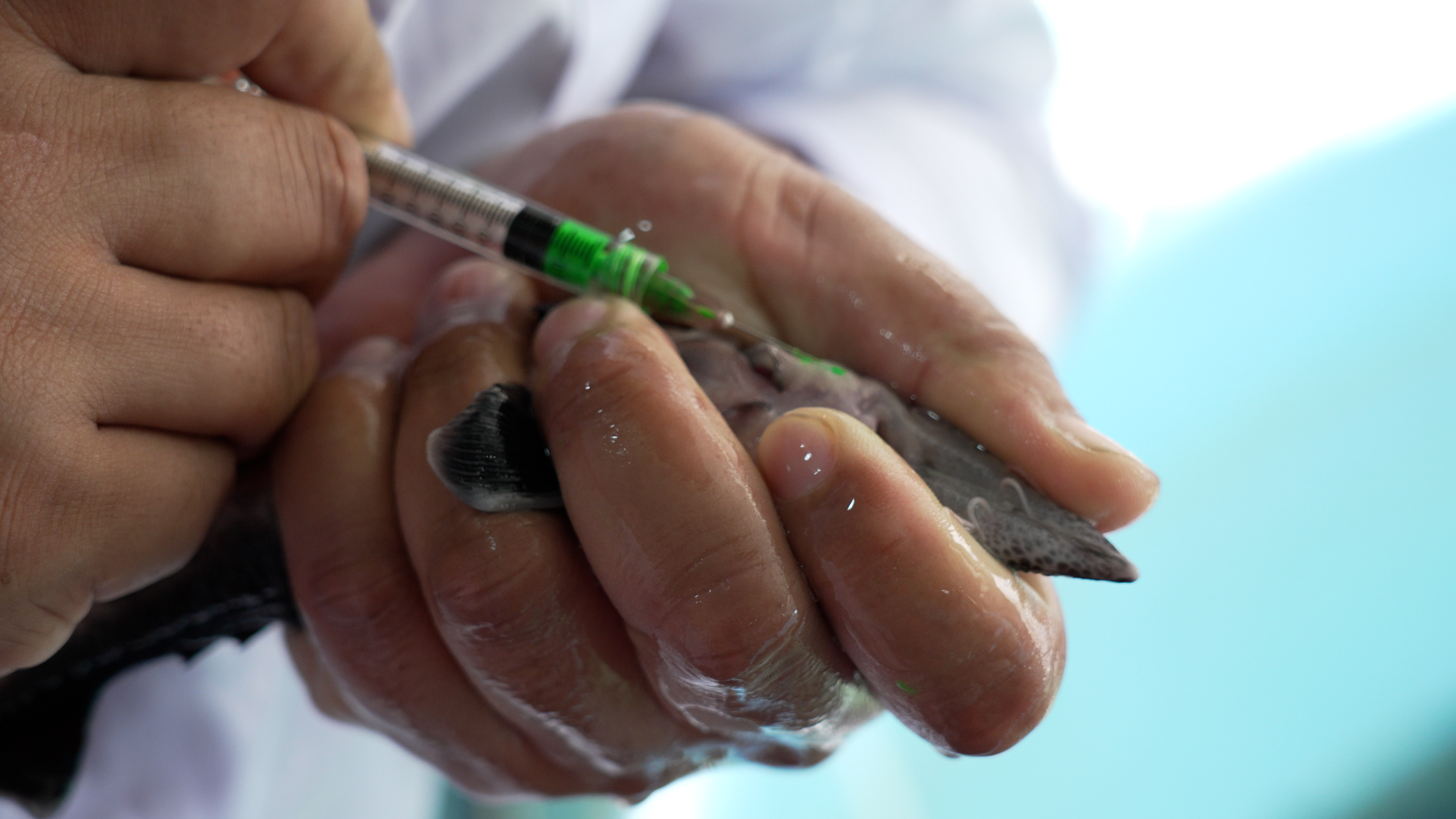 為鱘鰉魚注射熒光標(biāo)記