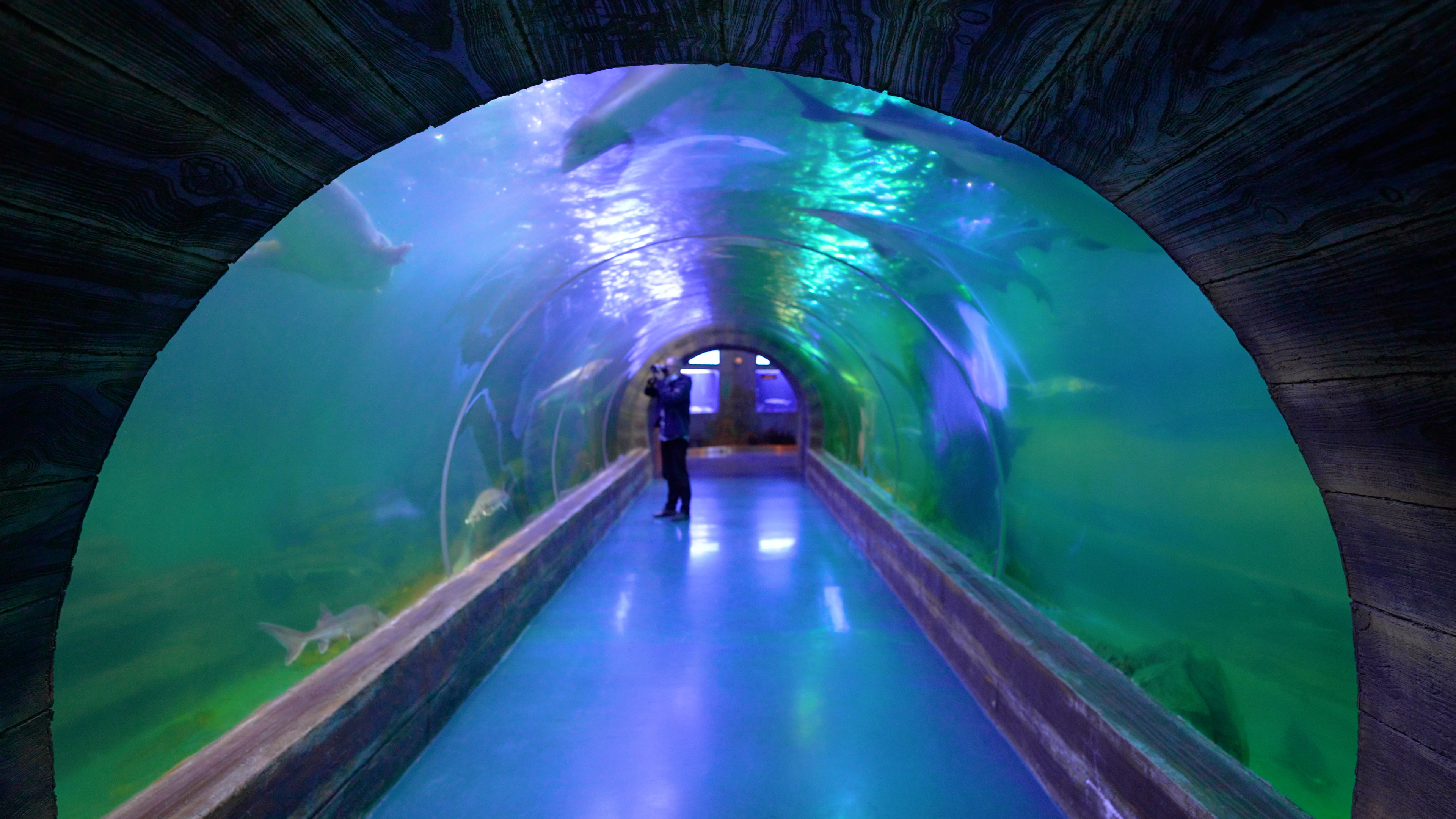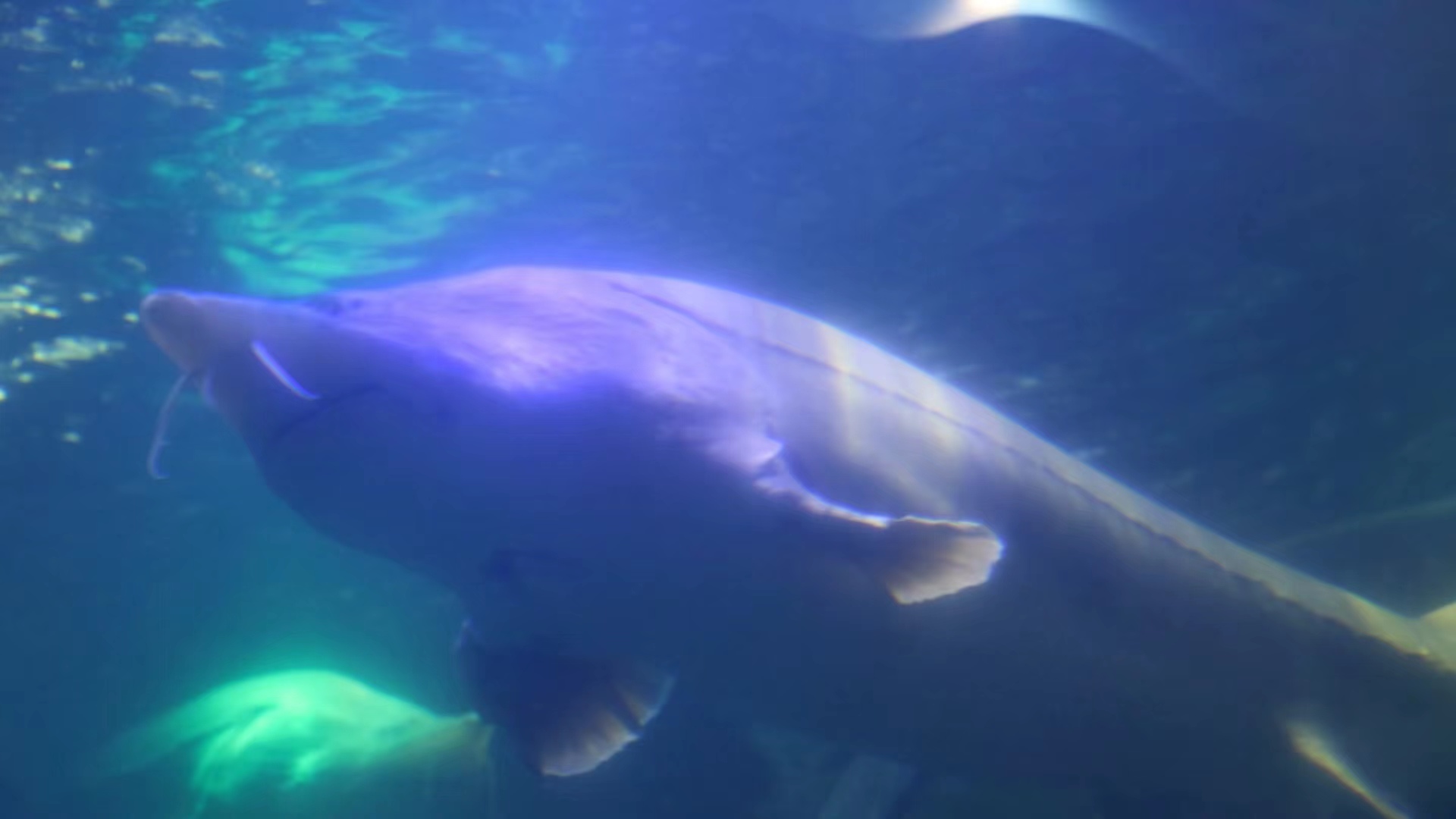 撫遠(yuǎn)市魚博館,巨型水族箱內(nèi)上百條鱘鰉魚自在遨游,縱使隔著玻璃,人們也可以清晰地感受到鱘鰉之美。體格碩大的鰉魚,任你用什么樣攝影器材,都很難將其籠罩一鏡之下。
